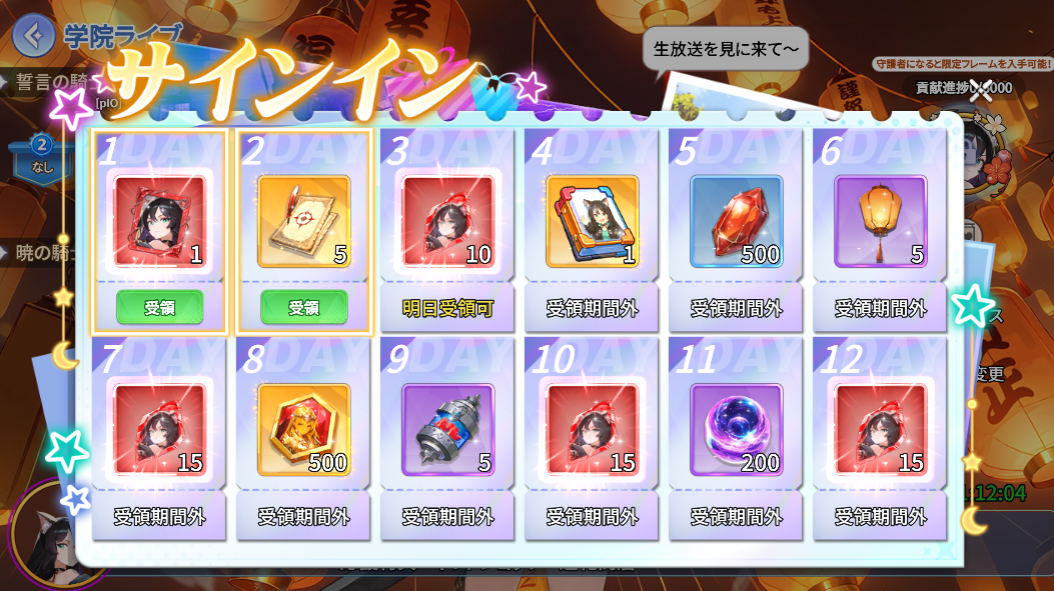 ・さらに、毎日ログインでギフト「灯籠」×3が受領できます。